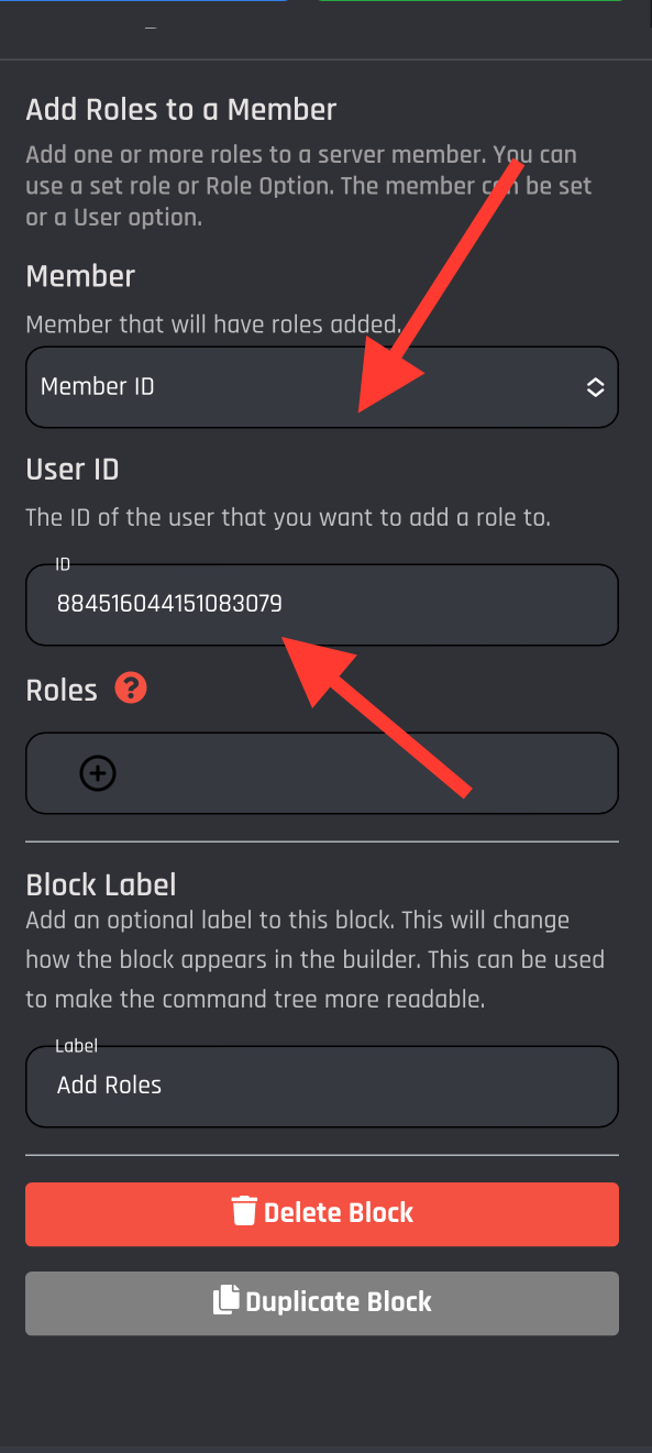 | Member ID                   | The Discord ID of the user that you want to add a role to.                                        |
