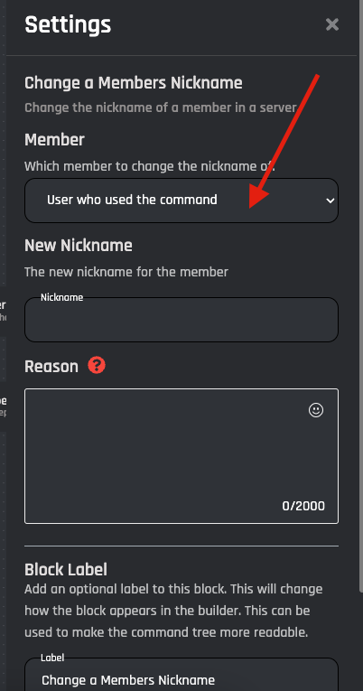 The New Nickname that you want to change the user’s nickname to. You can use Variables and Options inside this field.