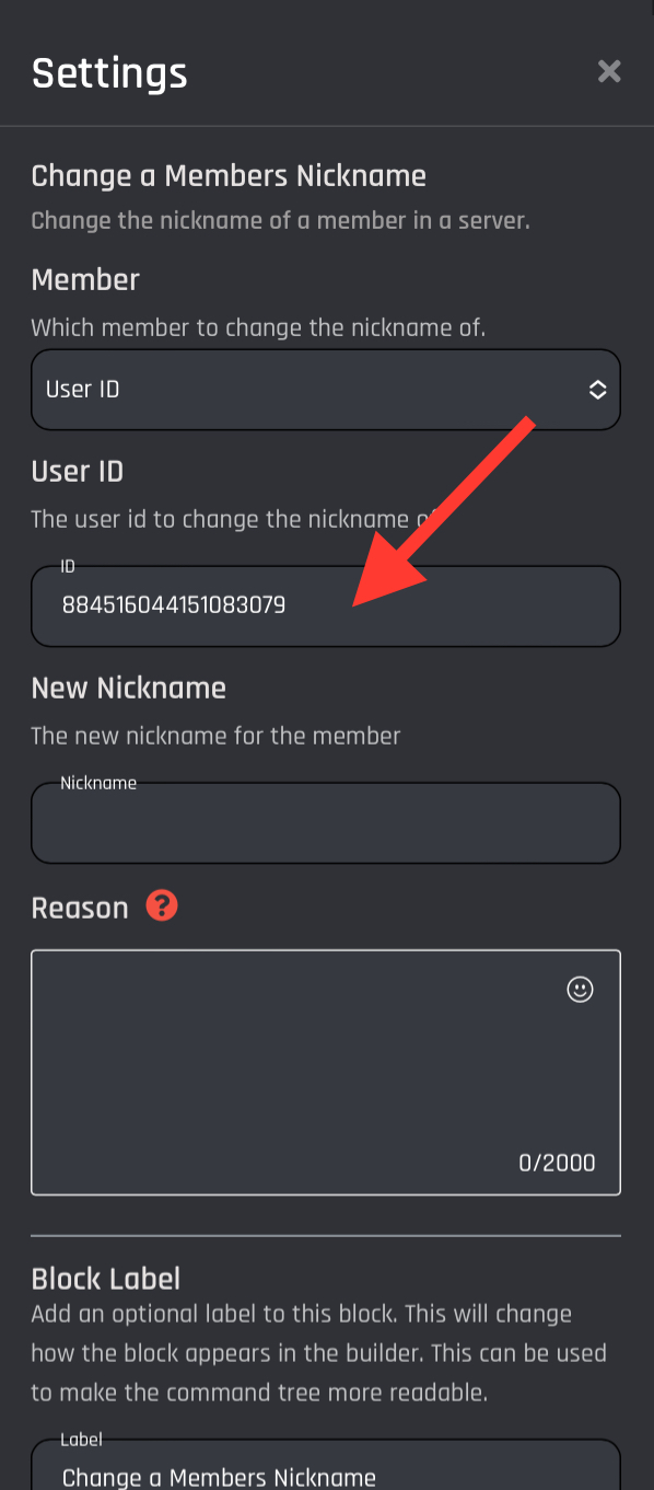 | User ID                   | The Discord ID of the user that you want to change the nickname of.                                       |