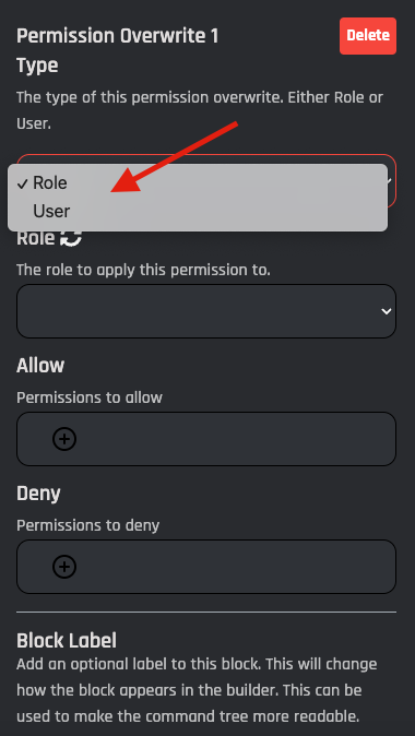 The type of this permission overwrite. Either Role or User.