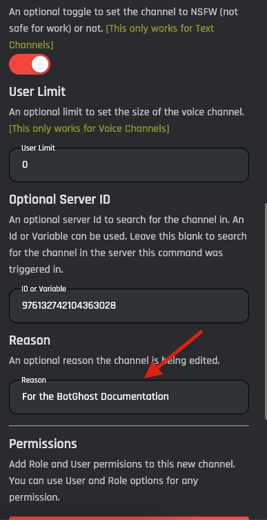 An optional reason the channel is being edited. Don't want to put a reason? Leave this blank.