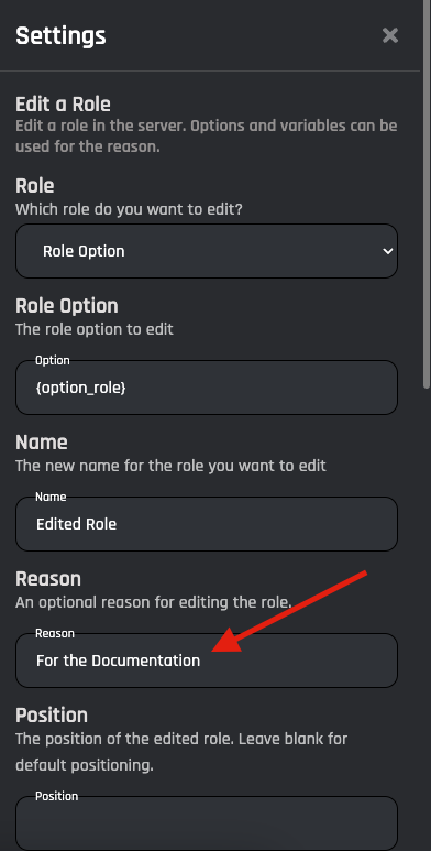 An optional reason for editing the role.