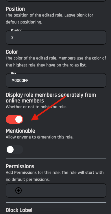 Whether or not to hoist the role. (making it show on the right column of your server)