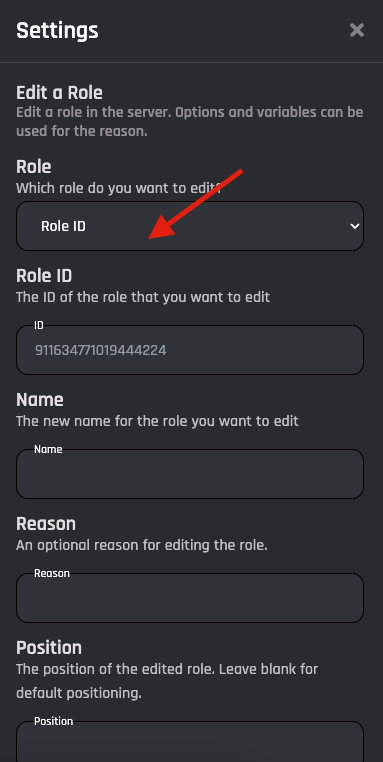 | Role ID     | A preset role ID to edit. |