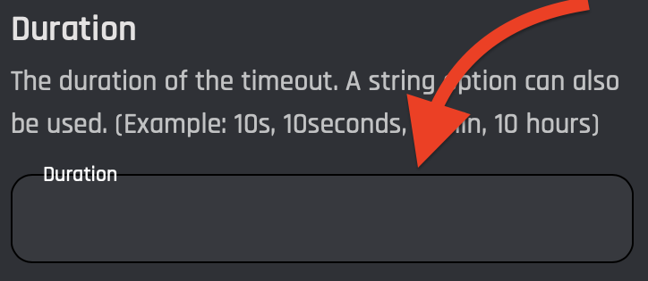 The timeout duration can be selected in this field. Variables or strings can also be used.